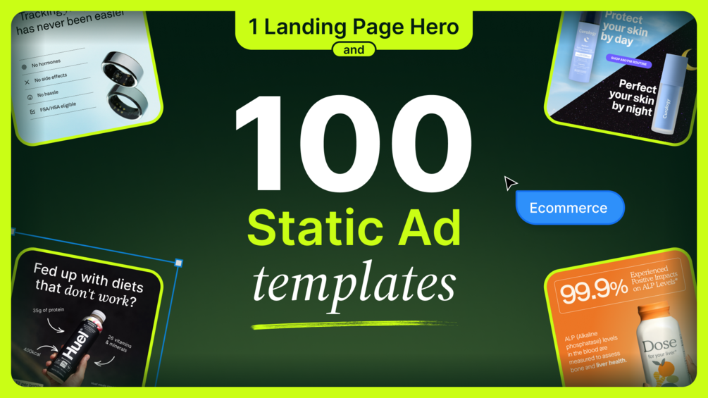 100 Static Ads + 1 Landing Page Hero Template (Ecommerce)